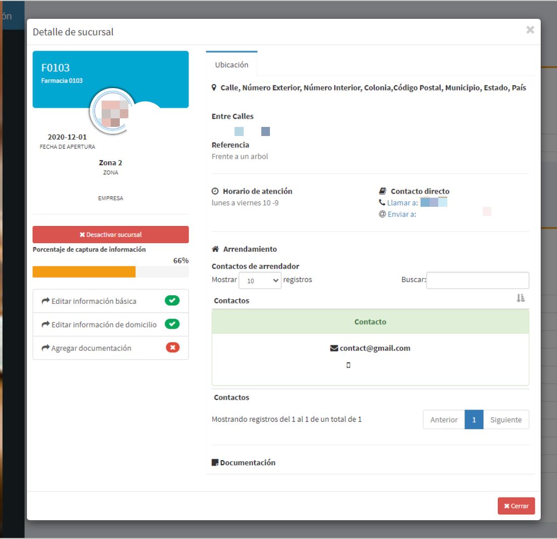 Ten a la mano la información de cada local: Dueño, cuentas bancarias, contactos y ubicación exacta.