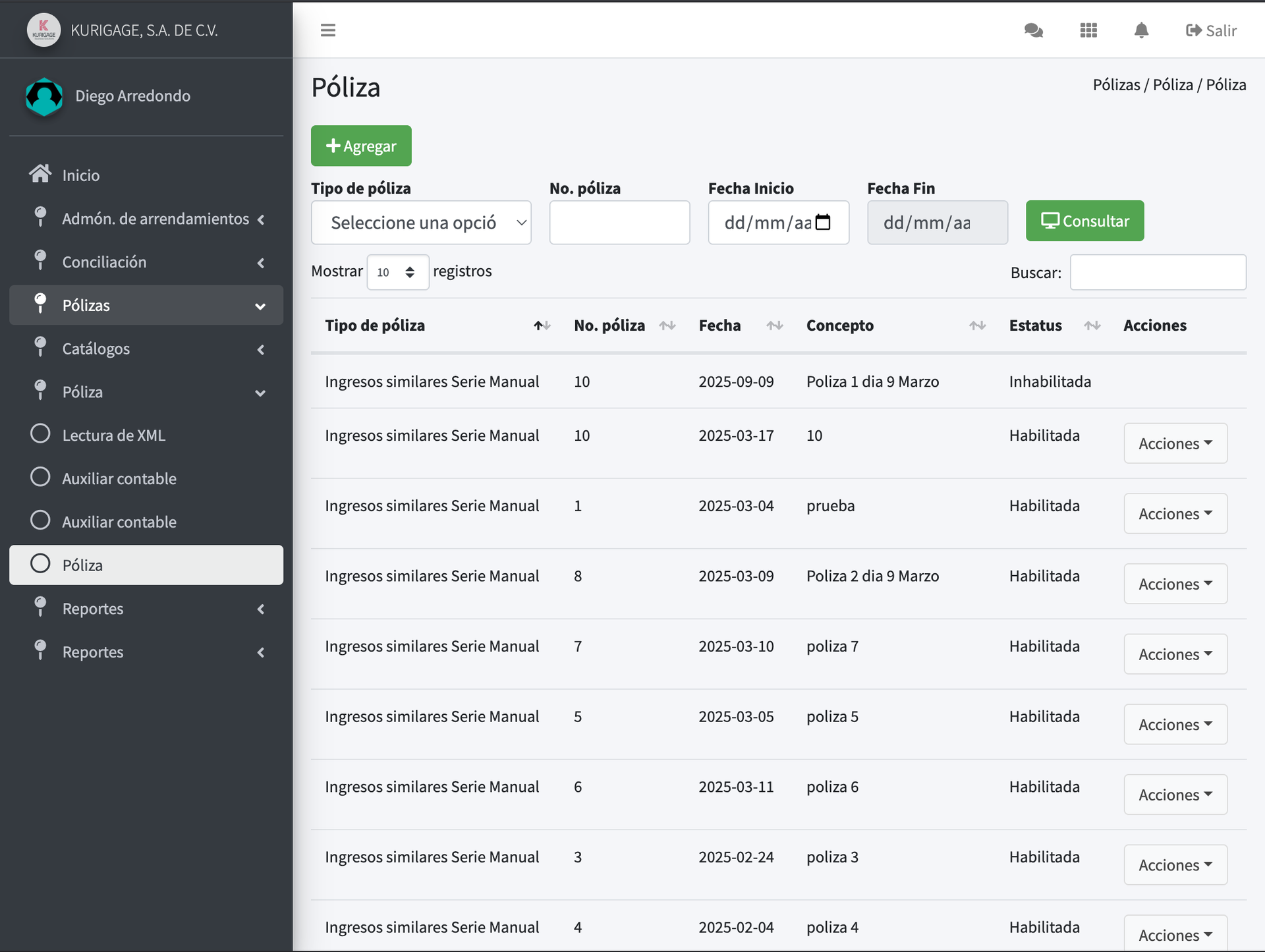 - Pólizas de ingresos (Visualización).