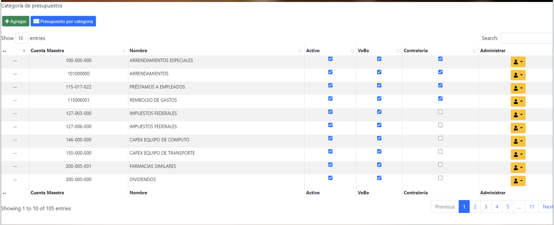- Asignación de presupuestos anuales segmentados por departamentos.