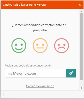Al finar la sesión se mostrará una breve encuesta de satisfacción de nuestra atención brindada, la cual agradecemos su tiempo para responderla.