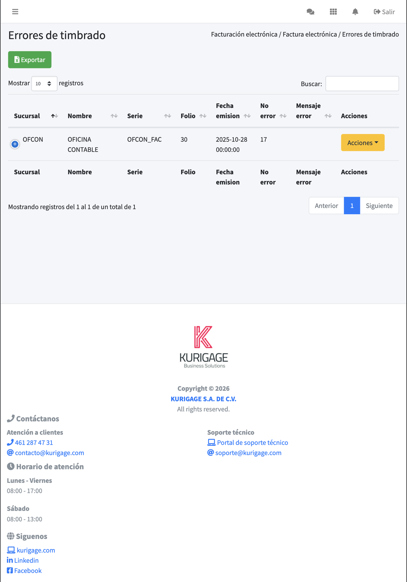 - Control de Errores: Visualización y corrección de errores de timbrado.