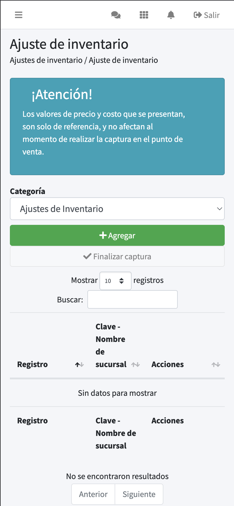 Permite realizar ajustes y correcciones de inventario.