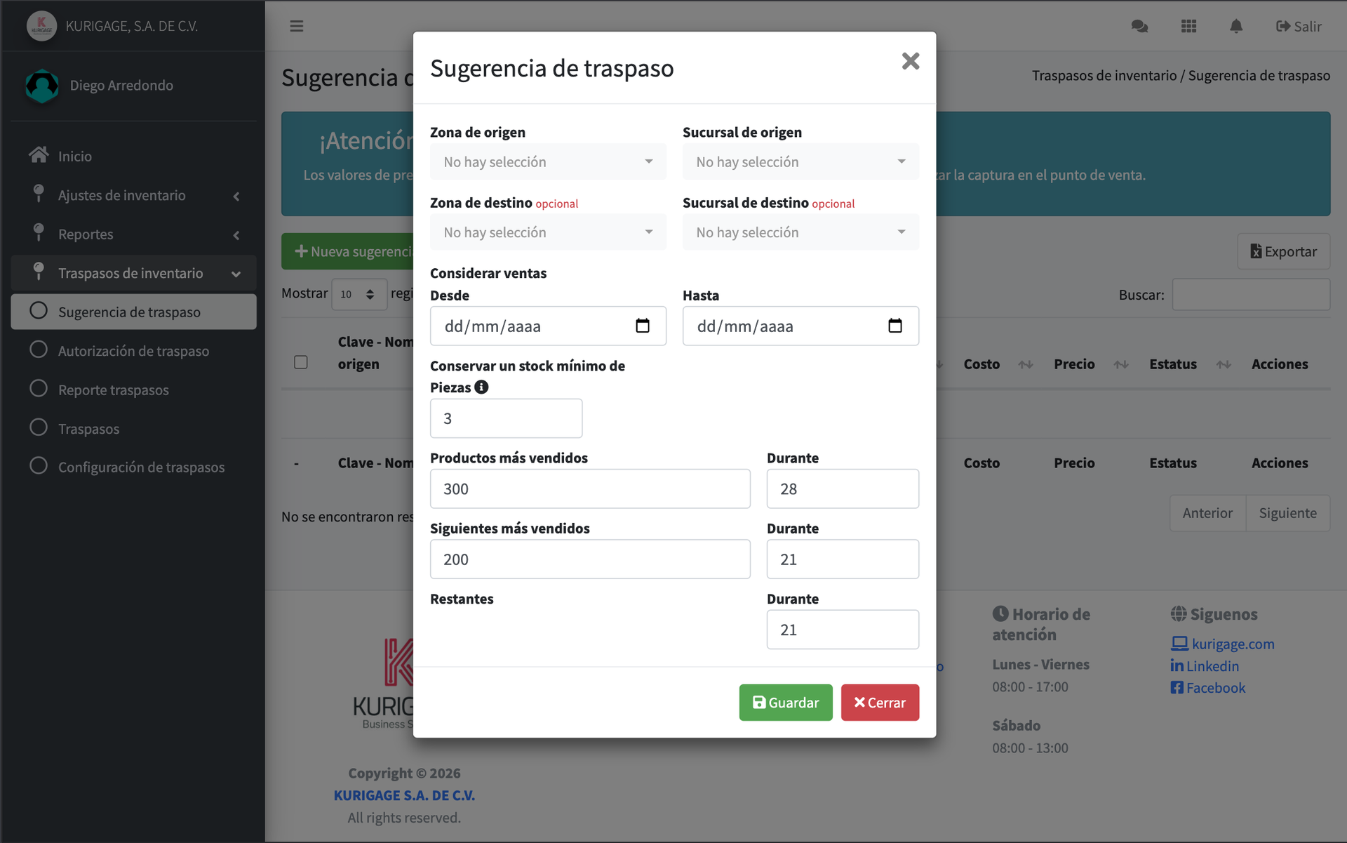 - Sugerencia automática de traspasos (Mueve lo que no se vende).