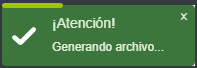 Una vez que se generó la información, se mostrará una notificación en la parte superior derecha en su mensaje como el siguiente: