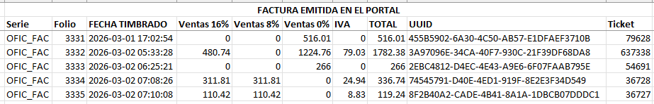 (Facturas generadas en el Portal de Facturación)