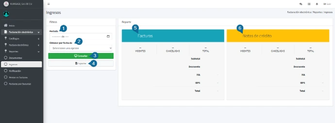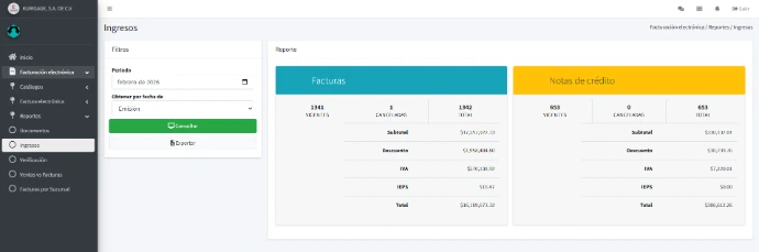 La finalidad principal de esta pantalla es proporcionar una herramienta para que la empresa consulte y analice su información financiera en un periodo determinado. En resumen, permite consolidar y distinguir ingresos, desglosar la información financiera, monitorear el estado de los comprobantes y facilita la gestión de datos.