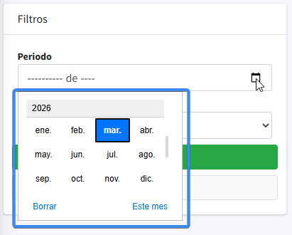- Periodo: Indica el mes seleccionado a consultar.