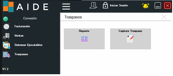 Dentro del módulo Traspasos se visualizan dos menús para realizar estas funciones Reportes y Captura de traspasos,